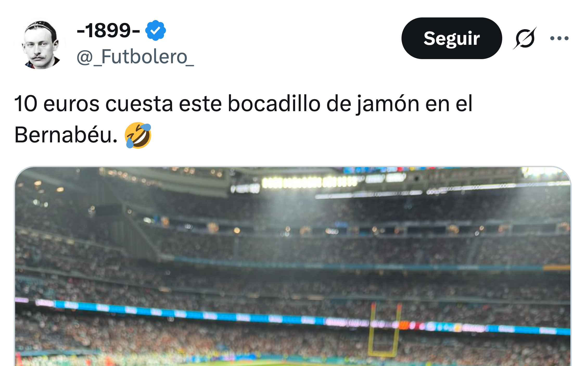 10 euros cuesta este bocadillo de jamón en el Bernabéu. 🤣 pic.twitter.com/22J8zpCQZS