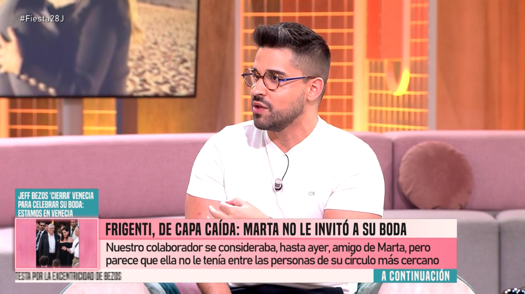 Frigenti apuntó directamente al cambio de entorno de Marta como causa de esta exclusión, sugiriendo que la colaboradora ha priorizado relaciones estratégicas sobre afectos reales. La magnitud del evento, con 400 invitados, ha servido para agrandar aún más el sentimiento de agravio entre los que quedaron fuera. “Si hubiese hecho una boda íntima… pero es que ha invitado a 400 personas”, remató, dejando claro que no se trató de una cuestión de espacio.