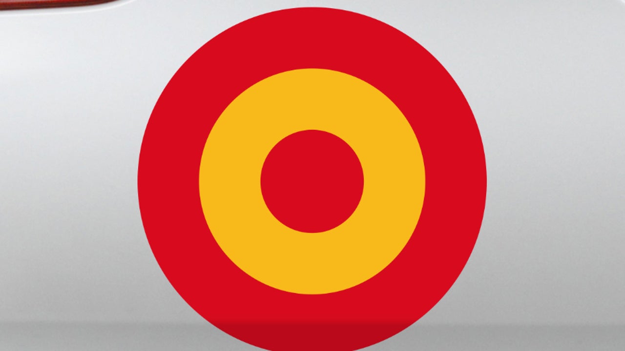 El significado de la misteriosa pegatina con forma de diana y bandera de España que llevan cada vez más coches al descubierto