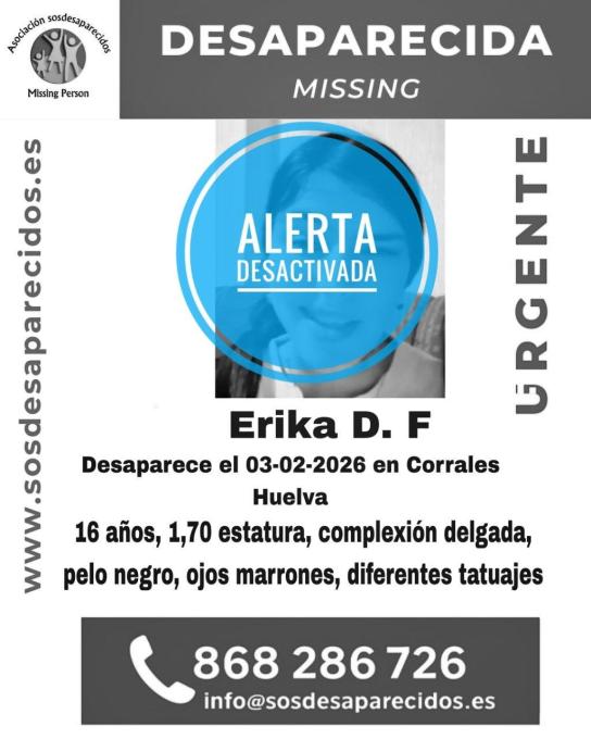Después de diez días de búsqueda, se ha confirmado que Erika D. F., de 16 años, ha sido localizada con vida. La adolescente había sido vista por última vez el pasado 3 de febrero, lo que generó una movilización inmediata de familiares, voluntarios y autoridades. La noticia llegó a través de SOS Desaparecidos, que desactivó la alerta tras su hallazgo.