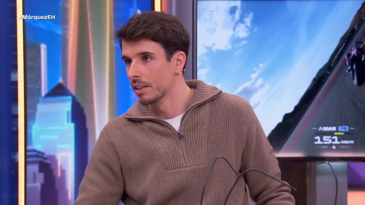 Ya sentados en la mesa de entrevistas, el conductor del programa quiso ir un paso más allá y preguntar directamente cómo había vivido el invitado la confusión. “¿Cómo te ha sonado a ti?”, planteó Motos, buscando una respuesta sincera. “Me ha dolido”, contestó en un primer momento Álex, manteniendo unos segundos de silencio que tensaron el ambiente antes de volver a la carcajada. El presentador aprovechó para reconducir la conversación hacia el deporte con un elogio público: “Enhorabuena por la temporada”, y dio comienzo a una charla en la que el motociclismo pasó al primer plano.