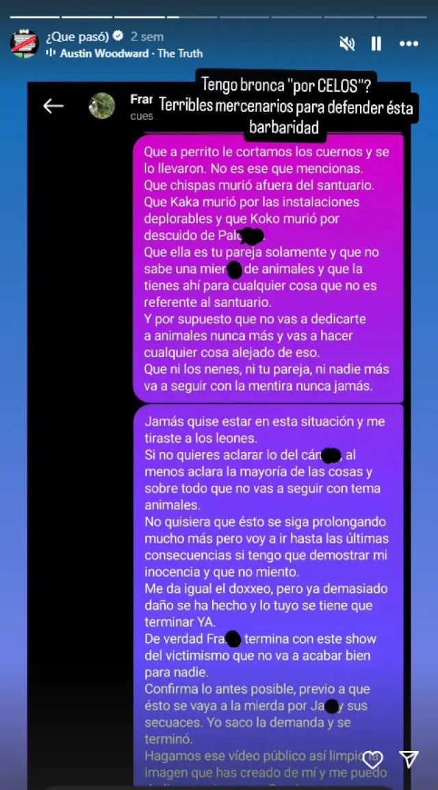 En su comunicado, Cuesta también se disculpa con Chi Wildlife, quien durante años fue uno de sus principales aliados en el santuario de Tailandia. La ruptura entre ambos ha sido especialmente amarga, alimentada por filtraciones de audios en los que se le escucha hablar con agresividad sobre los animales y reconocer que los vendía. En uno de los fragmentos, Cuesta llega a lanzar amenazas perturbadoras: “Voy a poner veneno todos los putos días hasta que mueran todos los putos perros”.