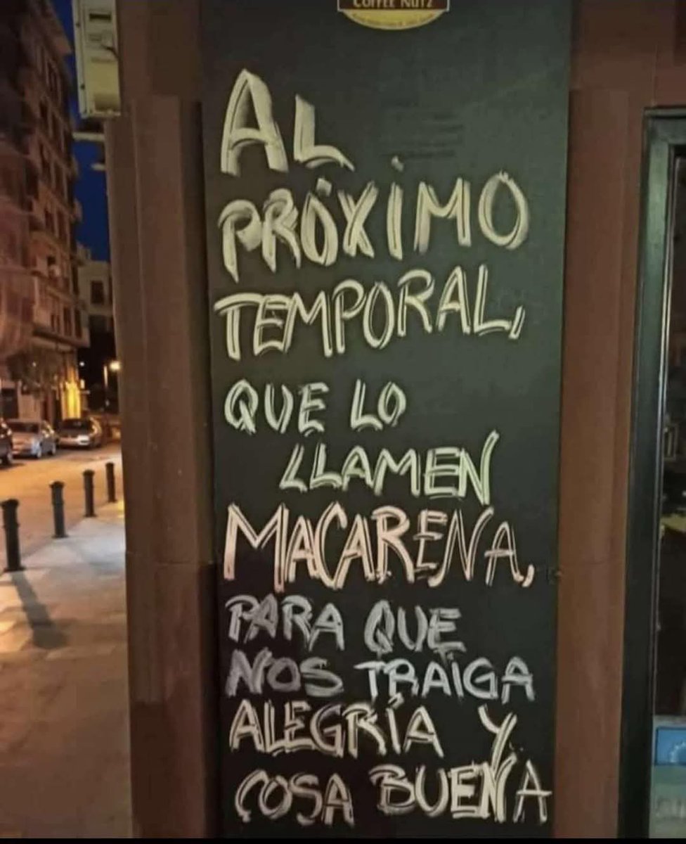Entre todos esos comentarios destaca uno que se ha vuelto especialmente viral. La usuaria Carmela, conocida como @Besadmelamano, compartió la imagen de una pizarra escrita en un bar de Andalucía con un mensaje que ha conectado con el sentir general. En ella se puede leer exactamente: «Al próximo temporal que lo llamen Macarena, para que nos traiga alegría y cosa buena». La frase, sencilla y cargada de ironía, ha arrasado en redes, superando las 26.000 reproducciones y acumulando más de un millar de “me gusta” en pocas horas.