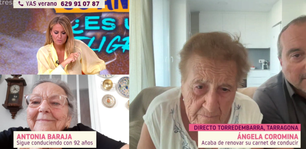 La popularidad de la iaia Angeleta también ha llegado a la televisión. El año pasado sorprendió entrando en el plató de TV3 a bordo de su coche. En esta ocasión, en cambio, optó por una conexión por videollamada en el programa *Y ahora Sonsoles* (Antena 3), acompañada por su nieto Jordi. Su intención era contar al público que, pese a su avanzada edad, sigue al volante y lo hace con plena seguridad.
