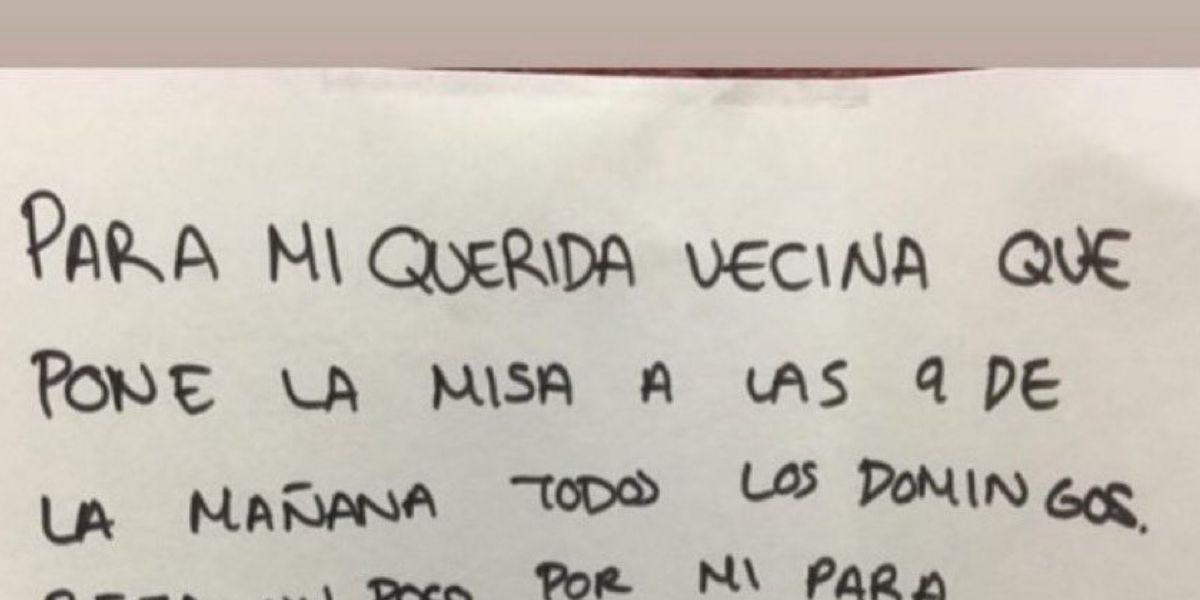 “Para mi querida vecina que pone la misa a las 9 de la mañana todos los domingos. Reza un poco por mí para aprobar exámenes. Un beso.”