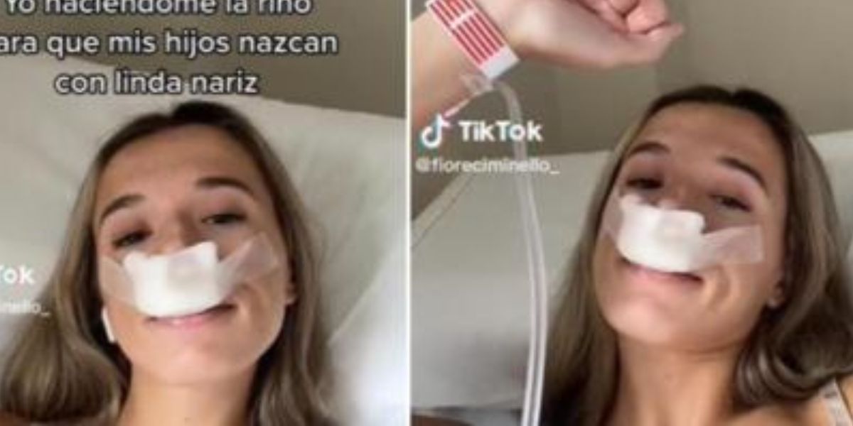 Eso es lo que ha confesado una usuaria de TikTok llamada Fioreciminello_ en un vídeo que se ha vuelto viral. En las imágenes, la joven muestra su rostro vendado tras una rinoplastia y explica el motivo de su intervención: «Yo haciéndome la rino para que mis hijos nazcan con linda nariz», dice mientras canta: «Yo solo puedo decir ‘de nada'».