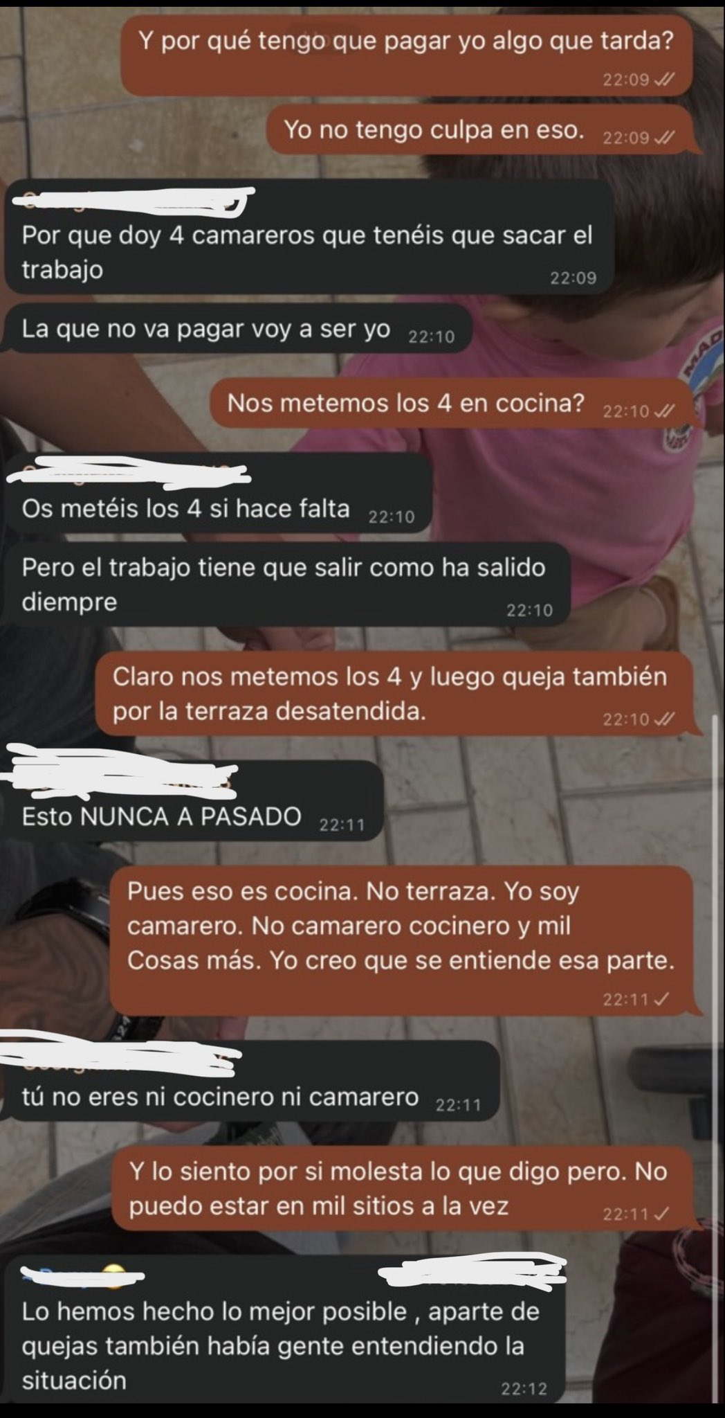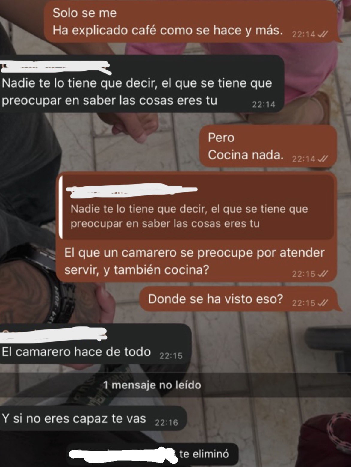 El intercambio de mensajes mostró a una jefa que no estaba dispuesta a escuchar argumentos. Cuando el camarero señaló que no era viable que todo el personal entrara en cocina a controlar las comandas, la respuesta fue tajante y sin espacio para el diálogo. Esa intransigencia despertó indignación entre quienes leyeron la historia.