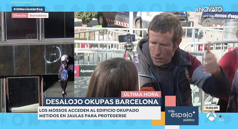 La tensión se ha vivido en directo en el programa ‘Espejo Público’, de Antena 3, cuando una reportera que cubría el desalojo de varios edificios okupados en el barrio de Gràcia, en Barcelona, ha sido interrumpida por un vecino que ha cuestionado la veracidad de las declaraciones de dos jóvenes que se quejaban de la situación de inseguridad y conflictividad que generaban los okupas. El hombre, que se ha identificado como miembro de la asamblea de vecinos, ha acusado a los medios de comunicación de manipular la realidad y de dar voz a la extrema derecha, que según él, está detrás de las protestas contra la okupación.