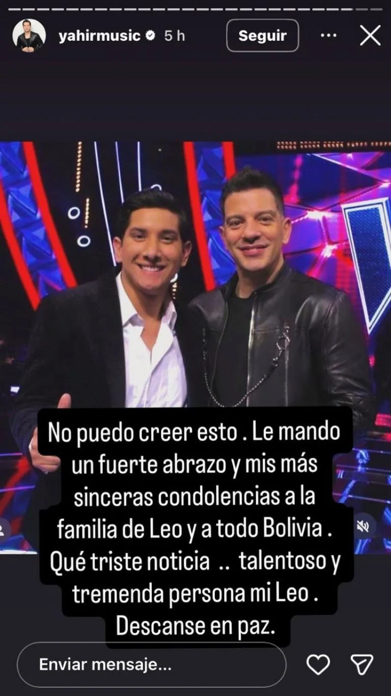 Entre las personalidades que lo apoyaron destaca el cantautor que lo tuvo bajo su guía durante el reality. En un mensaje publicado en redes sociales, expresó su profundo pesar por la partida de su pupilo: “No puedo creer esto. Le mando un fuerte abrazo y mis más sinceras condolencias a la familia de Leo y a todo Bolivia. Qué triste noticia… talentoso y tremenda persona mi Leo. Descanse en paz”. Estas palabras reflejan la cercanía y el afecto que existían entre ambos artistas.