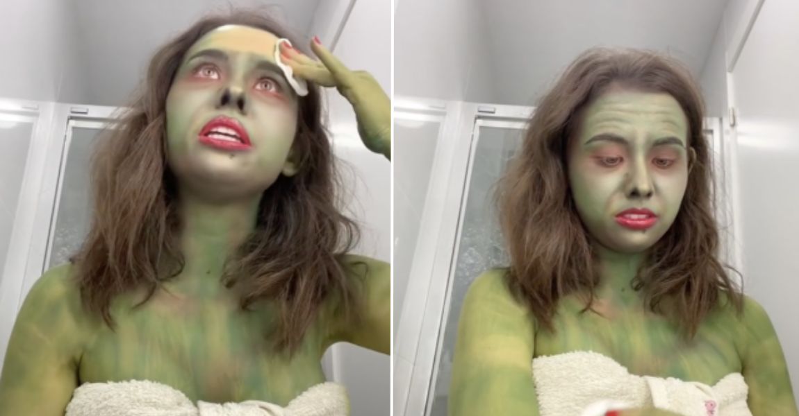 Una joven se pinta de verde para Halloween y no puede quitarse el color