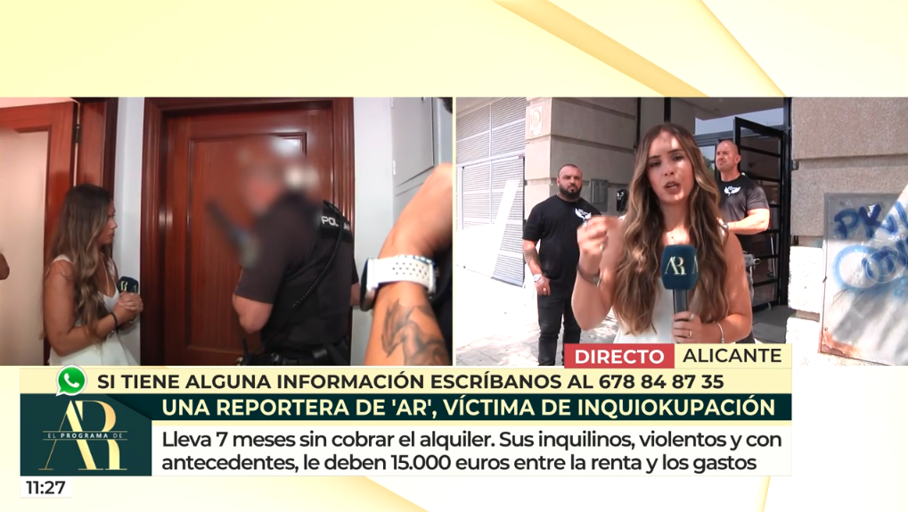 María Campos es una joven periodista que forma parte del equipo de ‘El programa de Ana Rosa’. Acostumbrada a contar las historias de otros, ahora es ella quien protagoniza una situación angustiosa que ha compartido en directo. El motivo: lleva ocho meses sin poder cobrar el alquiler de un piso que heredó de su madre en Alicante, debido a unos inquilinos que no han querido marcharse ni responder a sus llamadas.